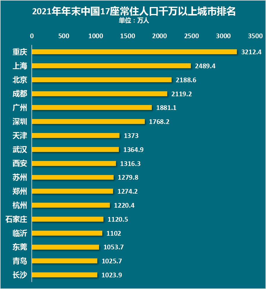 而论人口第一城,无人可以望重庆的项背,3212.4万常住人口,超过了很多省与自治区的人口规模。