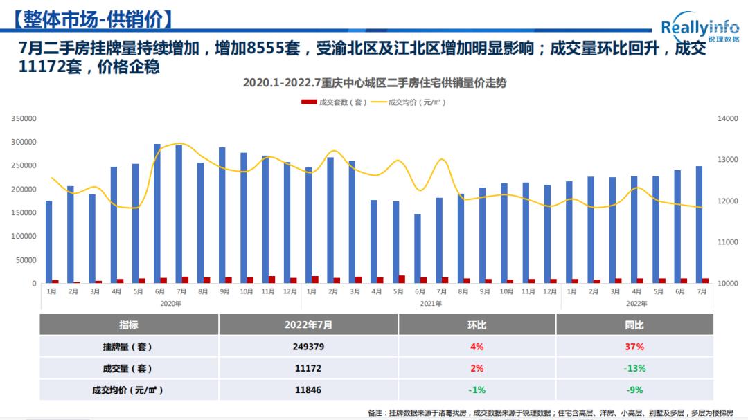 锐理数据显示,7月份重庆主城区的二手房挂牌量约25万套。