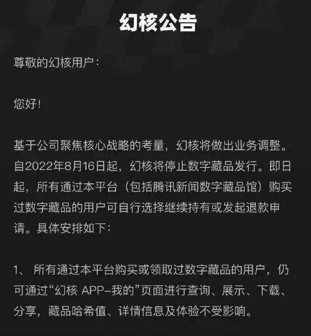 ▲图:幻核关停公告