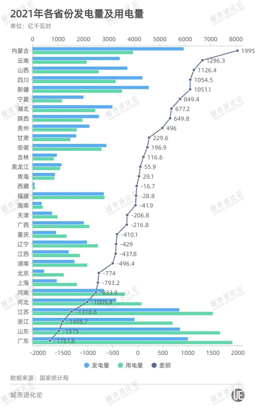 城叔注意到,尽管2021年电力消费量大于发电量的省份数量仍为17个,但压力值已陡然升级——