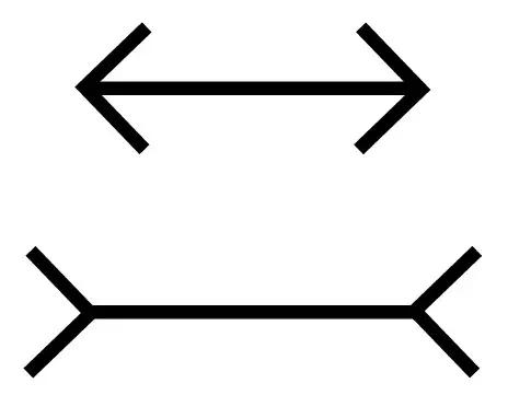 我们以为数学测试、单词测试、法语测试、音乐测试是不一样的测试,因为有些是跟单词有关,有些跟数字有关,一些跟声音有关。但心理学和所有科学一样,都是要在相似中找不同,在不同中找相似。如果心理学家被迫参战,那我们战旗的纹章可能可以考虑用著名的缪勒—莱尔错觉,两条看似长度不同但其实相同的直线: