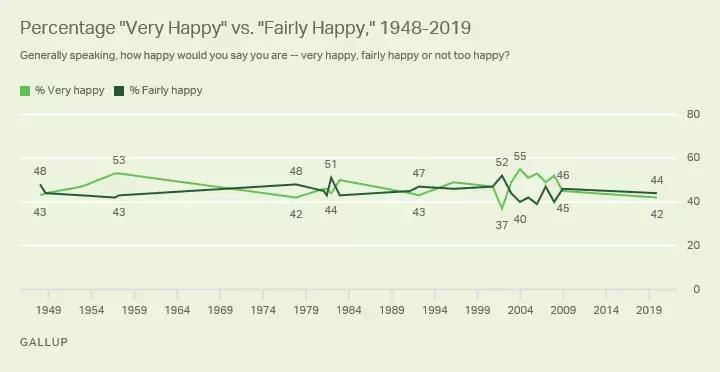 相对于其他,我们在快乐程度方面几乎没有进展,甚至还倒退了