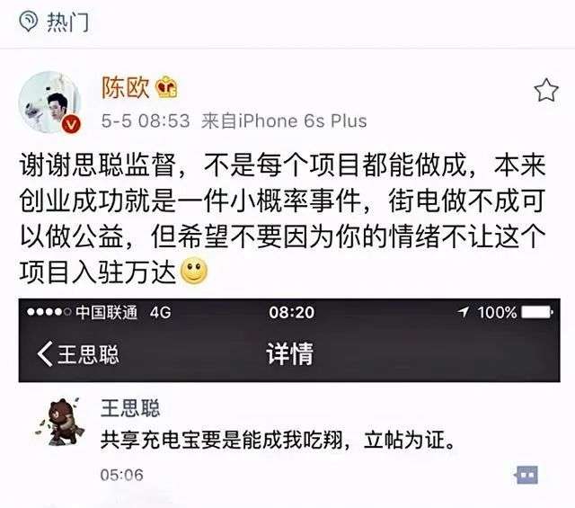 在共享充电宝这个东西刚出来的时候,王思聪曾发朋友圈断言共享充电宝成不了,并且放下了一些“狠话”,虽然话糙了点,但也能看到他对于这一类项目的否认。