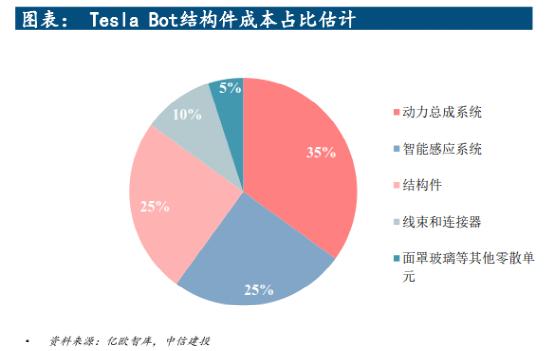 若参考亿欧及中信建投对特斯拉人形机器人的成本估测,包括电芯、热管理、电机、电控与减速器等在内的电池系统和电驱系统,占总成本的35%左右。