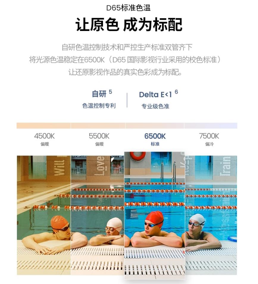 目前,国际公认的专业人士在进行色彩校准时,普遍都使用D65色温标准,该标准也已在影视制作、平面设计、服装设计等视觉相关领域广泛应用。美国电视标准(NTSC)和数字高清电视的国际标准(ITU-R BT.709)都要求使用D65色温标准,市面上绝大多数专业显示器也将标准色温设置为6500K。可见,D65色温已经是一项获得行业公认、且被普遍采纳的标准,坚果、极米使用该标准来衡量投影仪的色彩,确实更具说服力。