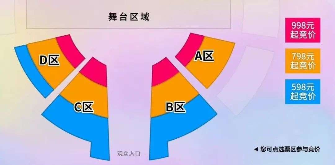 同时,总选线上、线下入场票价也呈现出年年增长的趋势。仅以今年为例,线上直播观看入场券便为普通视角68元、VIP视角108元,比去年增长了一倍。更早之前,则为免费。而现场门票,今年也持续以竞价的方式贩卖,相比往年从200元左右至千元的票价不同,今年因人次限制,最低划档至598元起,但也依然售罄。