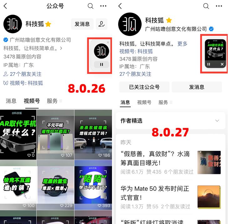悬浮窗播放的样式也从之前的公众号头像更改为正在浏览的视频封面。