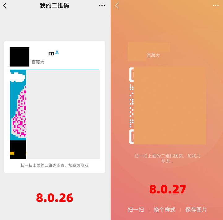 二维码主页整体也变成全屏,主要功能选项也也到了底部。