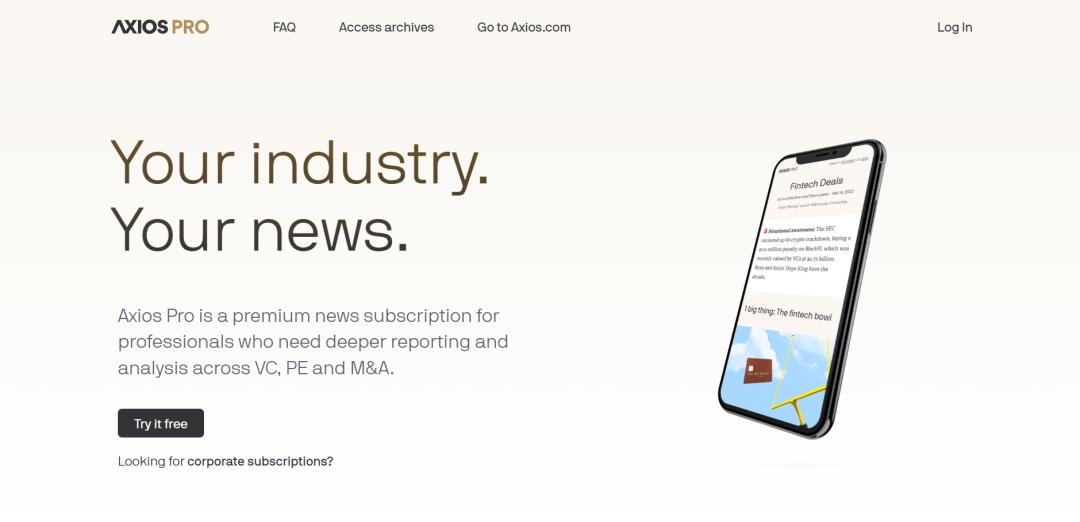 而在Axios的介绍中则提到,Axios Pro是为需要更深入的报告和分析的专业人士提供的高级新闻订阅。
