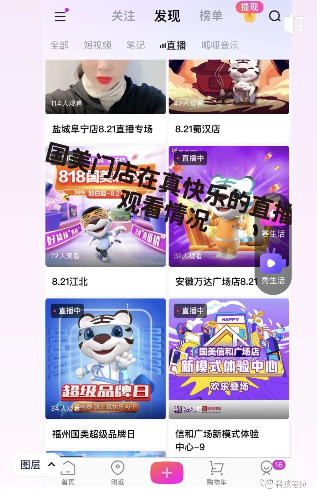 在真快乐的直播界面,国美门店的直播观看人数经常只有2位数,《21CBR》的文章则爆料,2021年底真快乐的“千万奖金挑战赛”活动数据造假,对外宣传的百万级日活实际未上万;打扮家APP现在除了开屏界面,已经只剩一片空白;折上折则在上线之后始终没有水花。