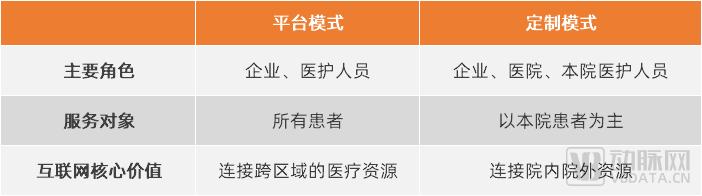 与平台模式相比,定制模式中企业与医院的关联度高,为医院赋能是企业的重要任务之一,即:帮助医院搭建技术平台、服务流程甚至直接参与到患者服务中,提升医护人员的工作效率。