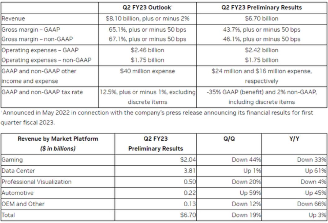 下图为本月早些时候英伟达初步披露的第二季度业绩: