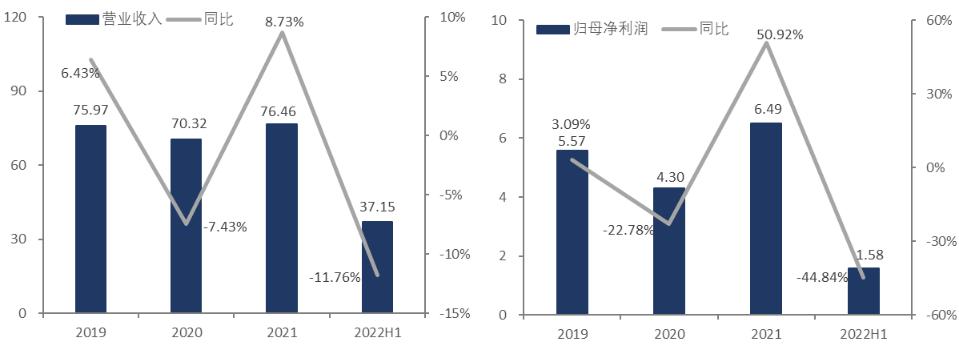2019-2022H1上海家化营收和净利润,单位:亿元 资料来源:公司财报,36氪