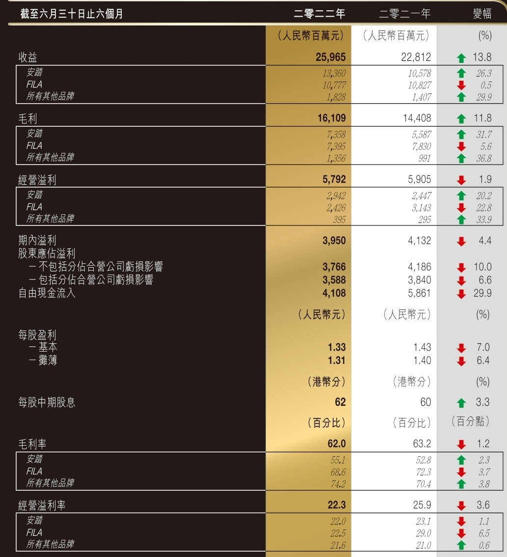 近日,安踏集团发布2022财年半年报,总体符合预期。