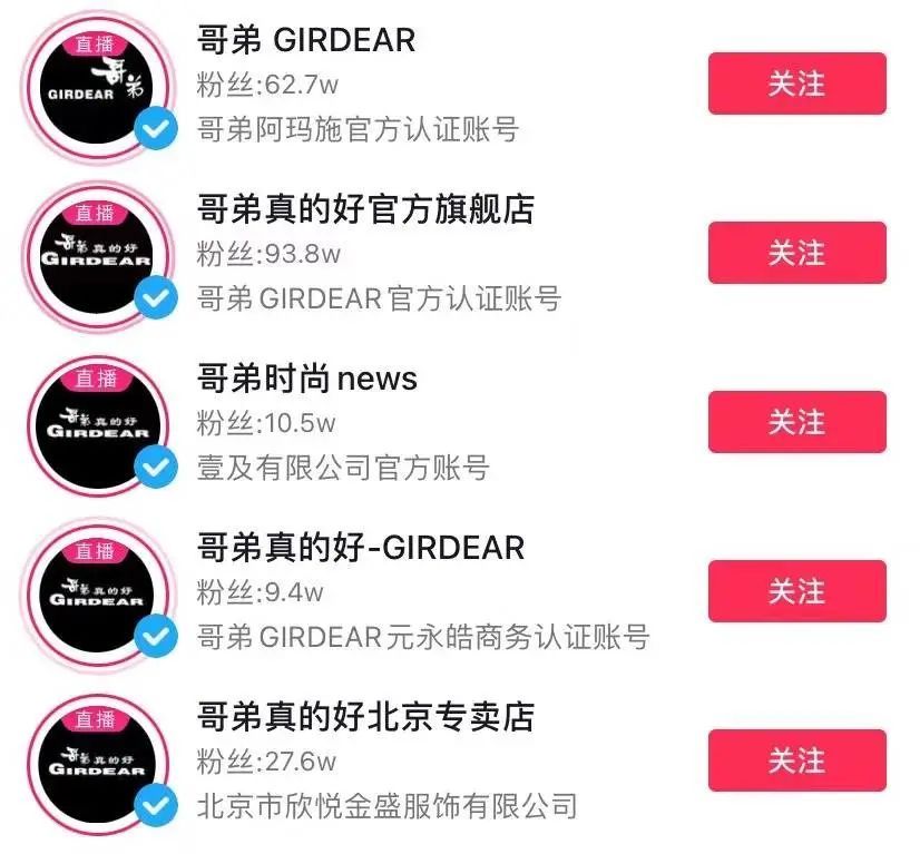 比如哥弟,以集团总部和区域门店为直播主体的矩阵账号。