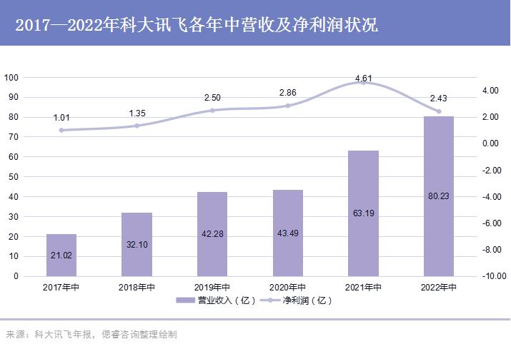 8月22日晚,科大讯飞发布2022年半年报——上半年实现营业收入80.23亿,较上年同期63.19亿,同比增长26.97%;实现净利润2.43亿,较上年同期4.61亿,同比下降47.29%。翻开历年年中报,这一净利润着实不好看,可以说一朝回到3年前。