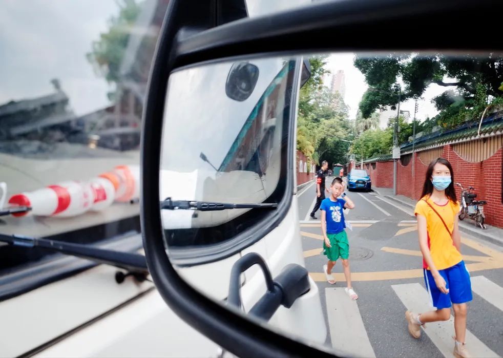 △ 卡车倒后镜里的寺贝通津,是老建筑与新市民