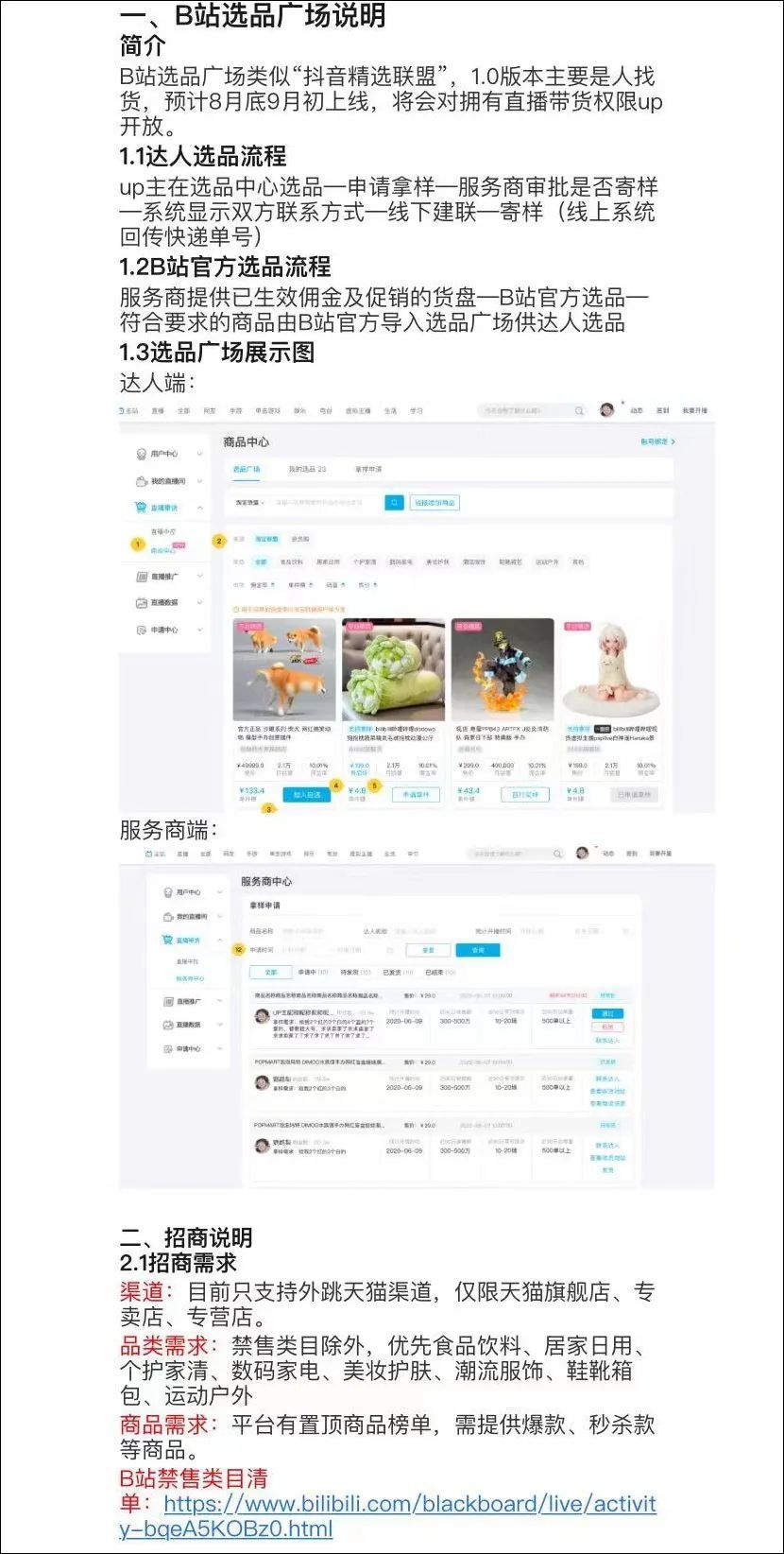 据新播场从行业人士处获悉的一份介绍,B站预计将在8月底9月初上线1.0版本的选品广场。