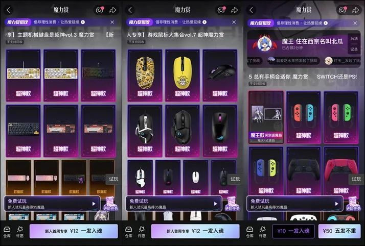 这种脱胎于线下一番赏的电商玩法,本质上就是花钱抽奖。而与线下一番赏不同的是,B站的魔力赏除了抽手办、周边外,还能抽手机、抽游戏机、抽外设。因为抽奖的属性,以及一些手办周边到货慢的原因,B站的魔力赏因此也出现了不少负面报道。