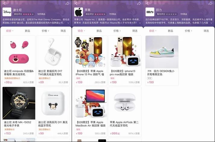 而新播场在B站“会员购-分类-品牌”页面中发现,该页面除了有许多动漫及动漫周边的品牌外,还出现了苹果、华为、小米、OPPO、VIVO、Pico等数码品牌,Champion、回力、小黄鸭等服饰鞋帽品牌,不二家、洽洽、统一等食品品牌,甚至还出现了铜师傅、网易严选、蜜雪冰城、晨光文具、小杨生煎等品牌信息。