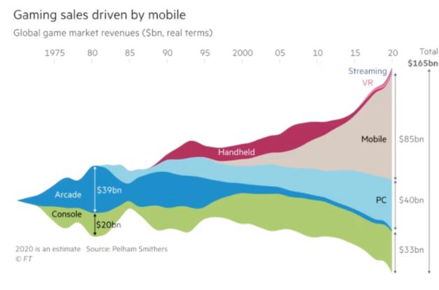 在过去,玩家们热衷于辩论在众多游戏平台中,谁会成为赢家。每个时代都会出现新的竞争者(例如索尼、微软),但也有一些曾经风光无限的公司逐渐失宠(如世嘉或雅达利)。时至今日,PC、PlayStation和Xbox粉丝仍然经常唇枪舌战,不过事实上,由于移动平台在游戏行业牢牢占据着统治地位,这些“传统”玩家只占庞大玩家群体当中的一小部分。