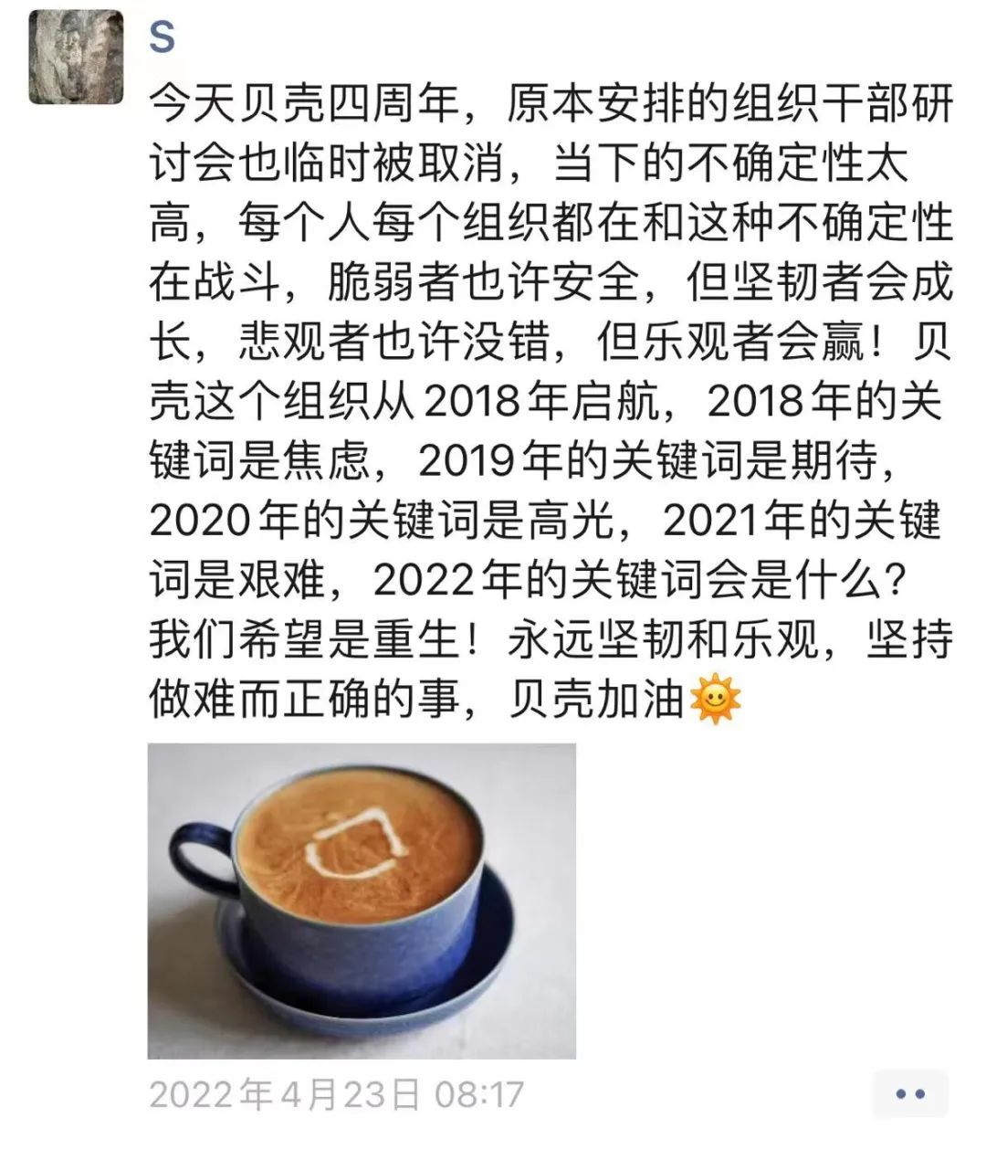 “2020年的关键词是高光,2021年是艰难,2022年会是什么?我们希望是重生!”今年4月23日贝壳找房成立四周年时,彭永东在个人微信朋友圈写下这番话。过去半年的行动证明,“重生”之门正在打开,彭永东开始试验这家全国最大房产交易与服务平台的承压能力。