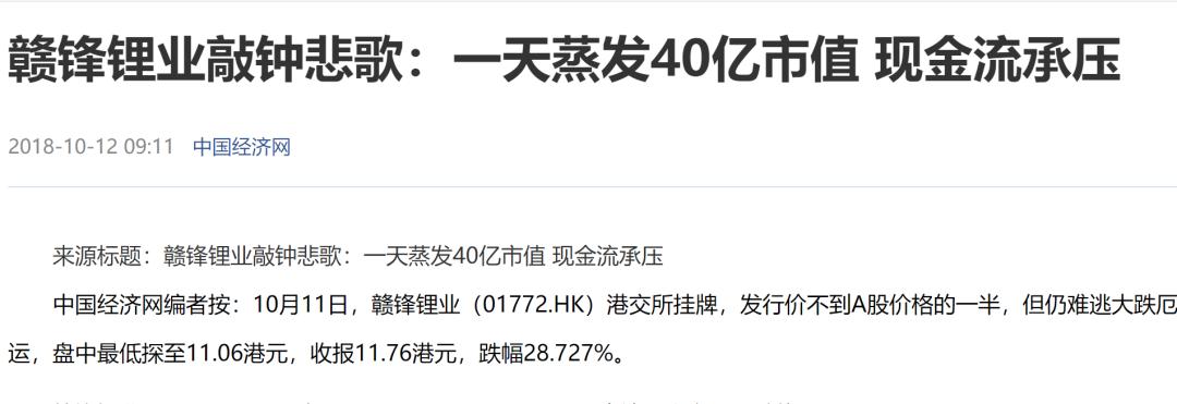 (2018年的新闻,如今赣锋锂业(01772.HK)的股价是那个时候的7倍)
