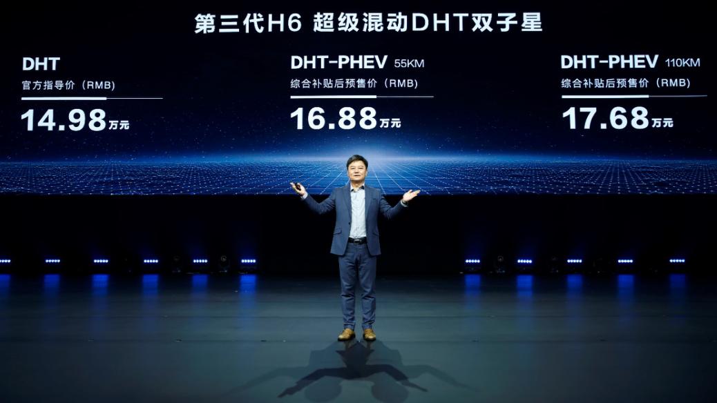 在发布会上,哈弗共推出两款哈弗H6的混动车型,其中DHT版(油电混合)官方指导价14.98万元;DHT-PHEV版(插电混合)顶配17.68万元。