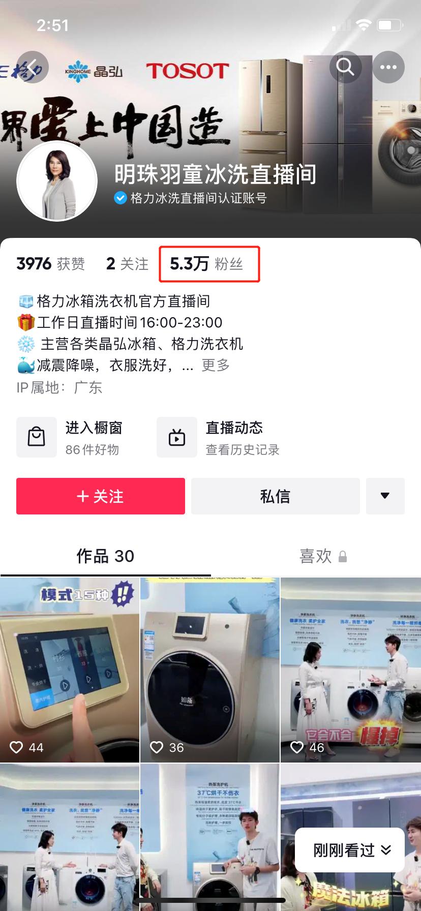 目前,明珠羽童精选、明珠羽童空调直播间、明珠羽童冰洗直播间三个抖音账号累计粉丝数为300万。同是转型直播的东方甄选,单单主账号的粉丝数都已过2400万。