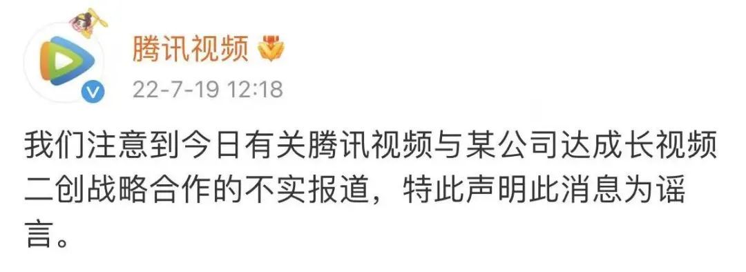外界曾一度传言,作为快手最大股东的腾讯或许也会开放版权授权给合作伙伴,但腾讯方面的回应却异常冰冷。今年7月,腾讯视频官方发布消息称:我们注意到有关腾讯视频与某公司达成长视频二创战略合作的不实报道,特此声明此消息为谣言。算是彻底斩断了快手老铁们的念想。