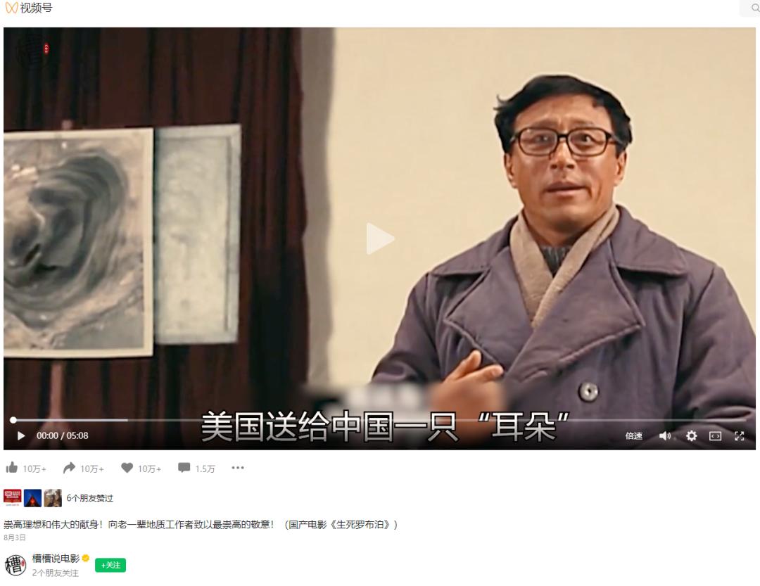 而一些爆款的内容作品,也足以证明影视解说类的二创作品拥有广阔的受众基础,比如“槽槽说电影”在8月初发布的一条《生死罗布泊》的影视解说视频,就斩获了点赞、转发和在看的三10w+成绩。