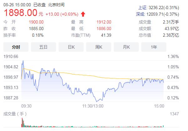然而自2020年以来,茅台的股价一路上扬并处高位,截止26日收盘,贵州茅台总市值达到2.38亿元,25日曾获沪股通增持45.11万股。
