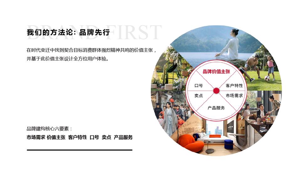 因此上述品牌先行的发展史显而易见,郑南雁及其团队在品牌层面倒是先形成了体系性的理论架构,创立出“slogan(口号)、目标客户、市场定位、价值主张”等六大品牌构成要素形成闭环内容,且层层深化。