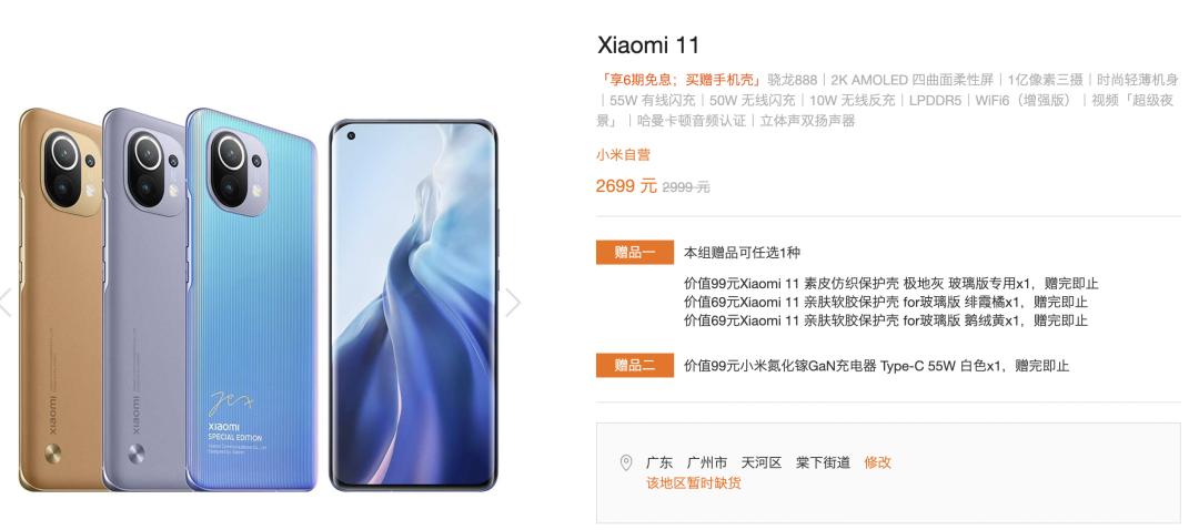 不可否认,小米11这波跳水力度的确很猛,说是价格腰斩也不过分。当然,这里对比的是首发原价,小米11当前的正常市场价格已经明里暗里降了不少,比如小米官网小米11的起售价原价显示的就是2999元,促销价2699元。