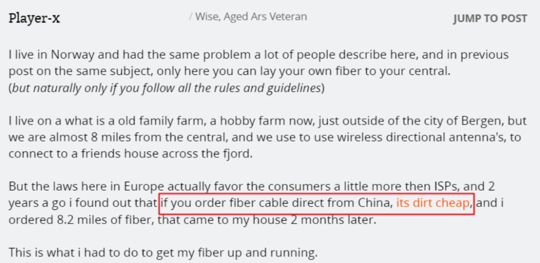 外国人们甚至意识到了,中国的光纤非常便宜 。