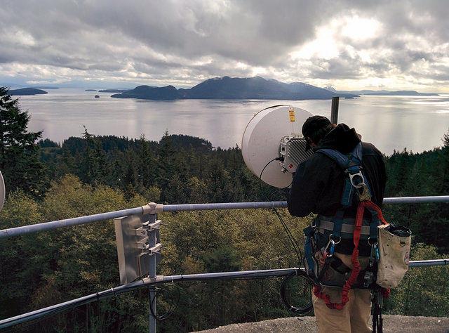 他们跟一个叫 StarTouch 的公司买了带宽服务,利用岛上最高的水塔,在顶上安装了接收器,来接收 StarTouch 从大陆发射的无线电信号。
