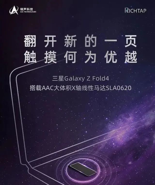 比如前两天三星刚刚发布的折叠屏手机Galaxy Z Fold4 ,就搭载了瑞声科技专门定制的 X 轴大体积线性马达 SLA0620 。