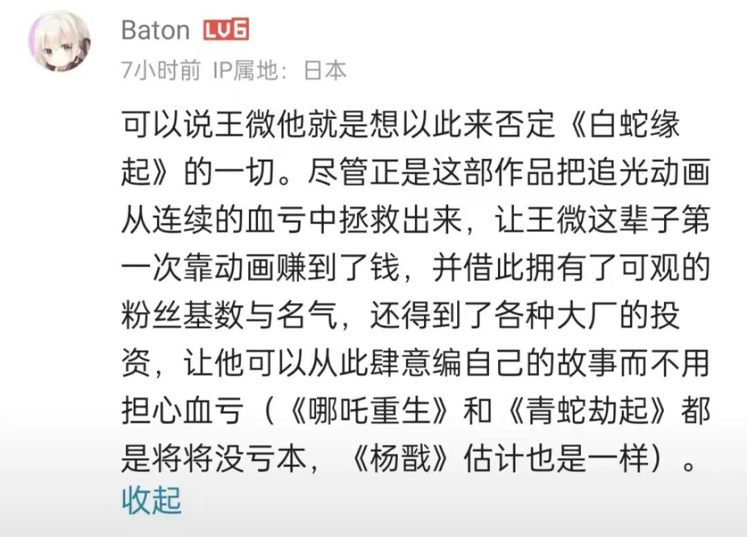 直到这时王微才意识到剧本的问题,《白蛇:缘起》是追光第一次将剧本交给专业编剧,上映靠粉丝“自来水”刷到了4.4亿人民币票房。