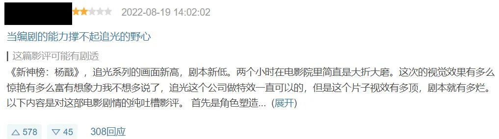 但《白蛇》编剧离职后,追光推出的几部新电影还是难免落入 “剧情单薄,动机不明” 等评价。
