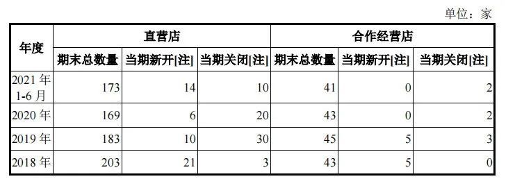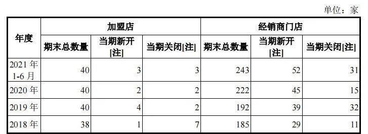 五芳斋2018-2021年上半年门店增减情况