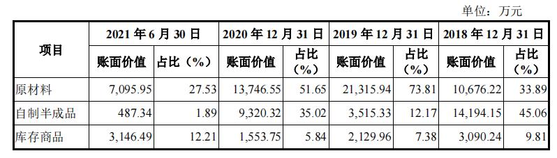 五芳斋2018-2021年上半年库存情况