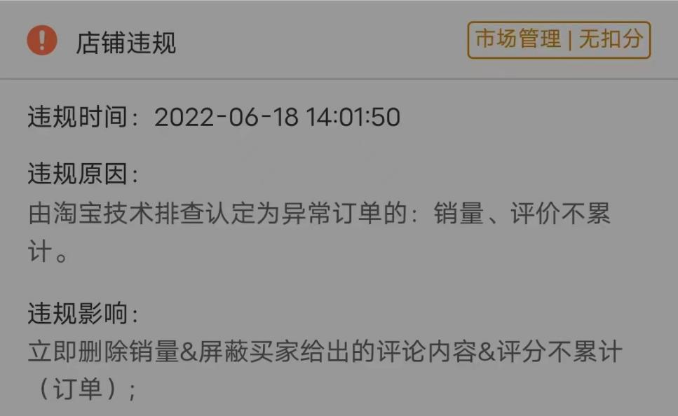 然而,3天后,小志的网店管理后台收到淘宝平台的警告,那11张订单存在异常……