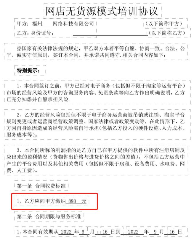 例如,小志签订的网店无货源模式培训协议,对于培训机构的义务只提及“甲方必须向乙方提供对接群” “开设店铺流程由乙方完成,甲方有责任督促和提供一定范围内的帮助”,全然不见销售所提“全程指导”。
