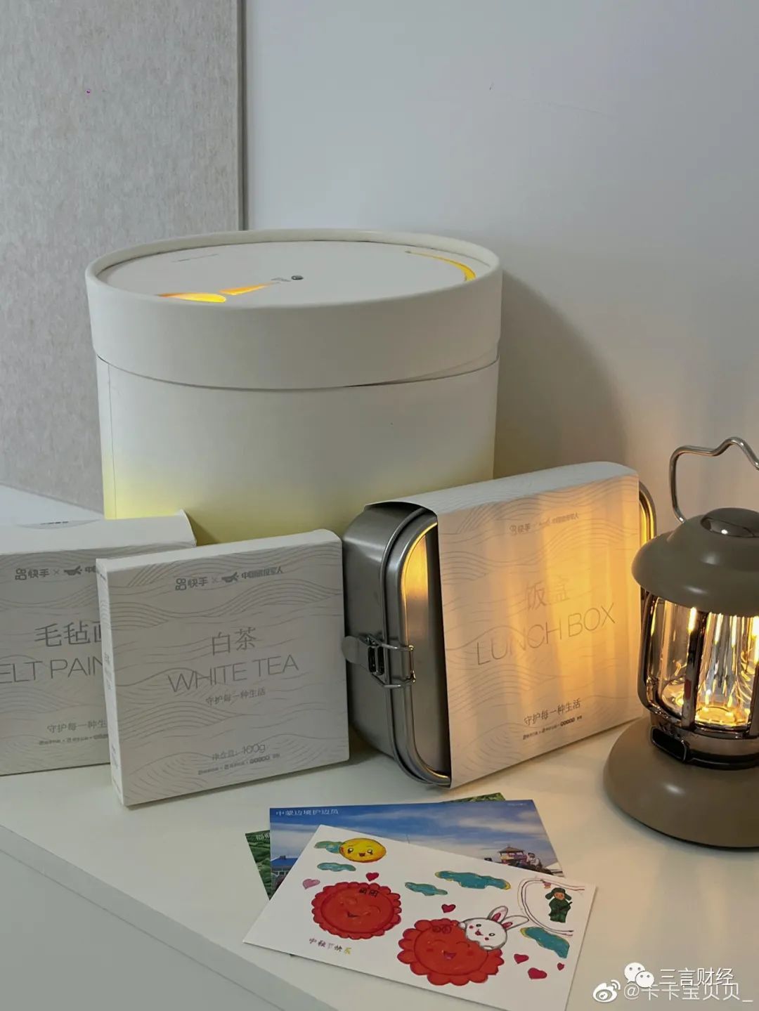 快手的中秋礼盒除了月饼,还有饭盒、白茶饼、露营灯、毛毡画、明信片。