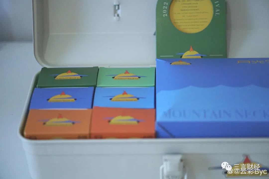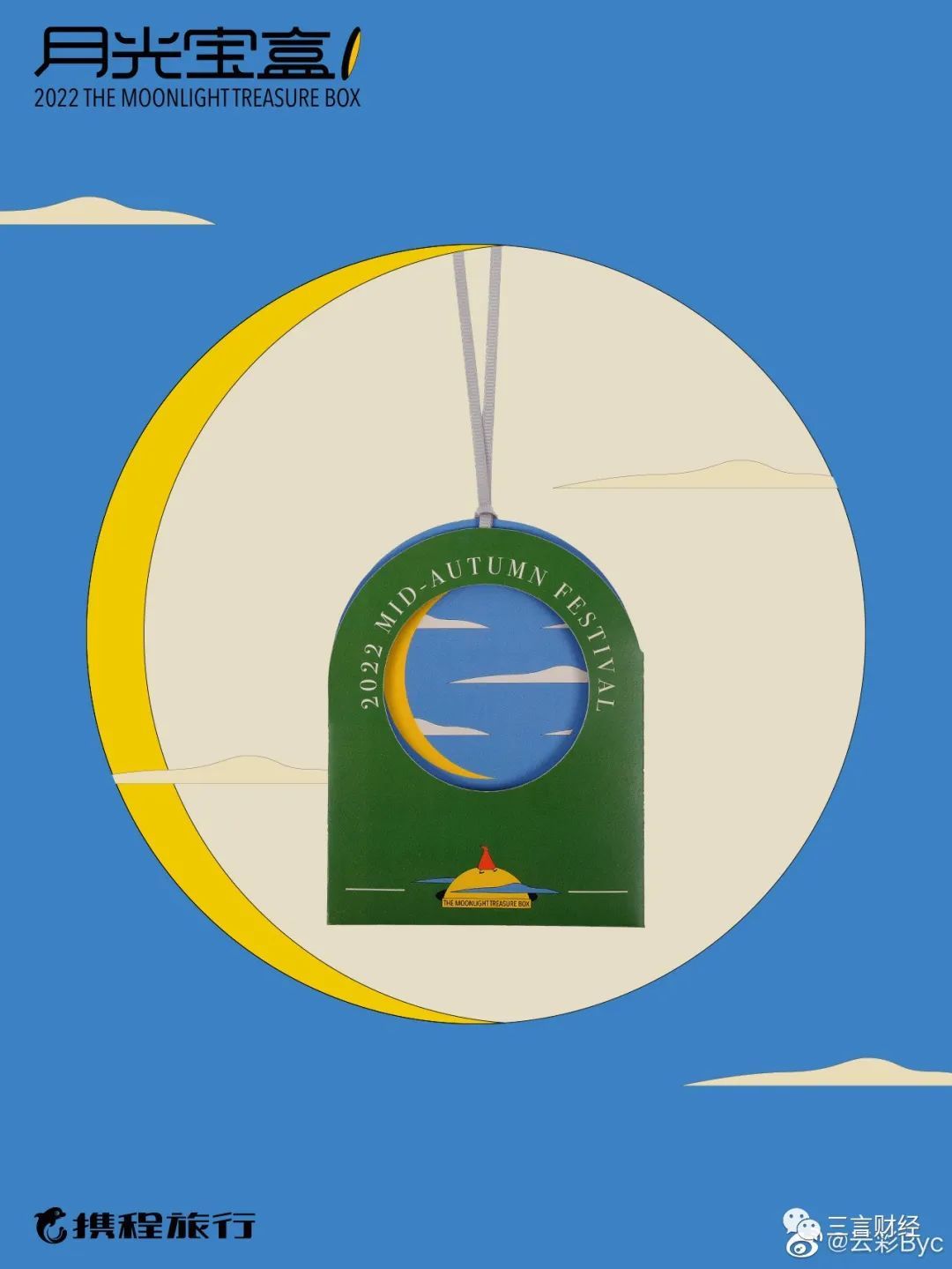 携程的中秋礼盒以“月光宝盒”作为创作灵感,融入了沙漠、海洋、森林等元素融。除了月饼,还有颈枕、贴纸、贺卡。
