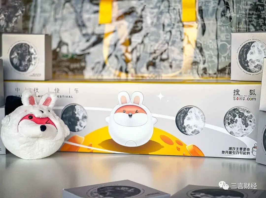 搜狐的中秋礼盒袋上,印有张朝阳关于地月公式手稿。除了月饼,还有DIY月相卡、小兔公仔。