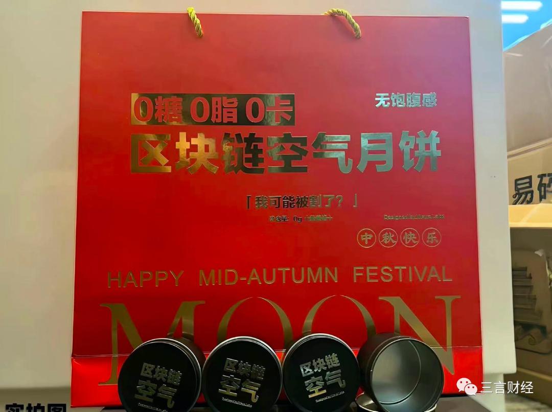 今年还出现了一款“区块链空气月饼”,从网上流传的图片来看,这款空气月饼的包装袋上写有“0糖0脂0卡”、“无饱腹感”、“我可能被割了?”字样。