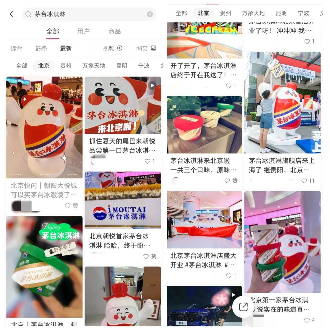 “经常能在小红书刷到关于茅台冰淇淋的笔记。”一位用户向燃次元表示。燃次元也看到,早在半个月前,在小红书和大众点评等平台上,就有博主发帖预告茅台冰淇淋北京首店即将开业的消息。