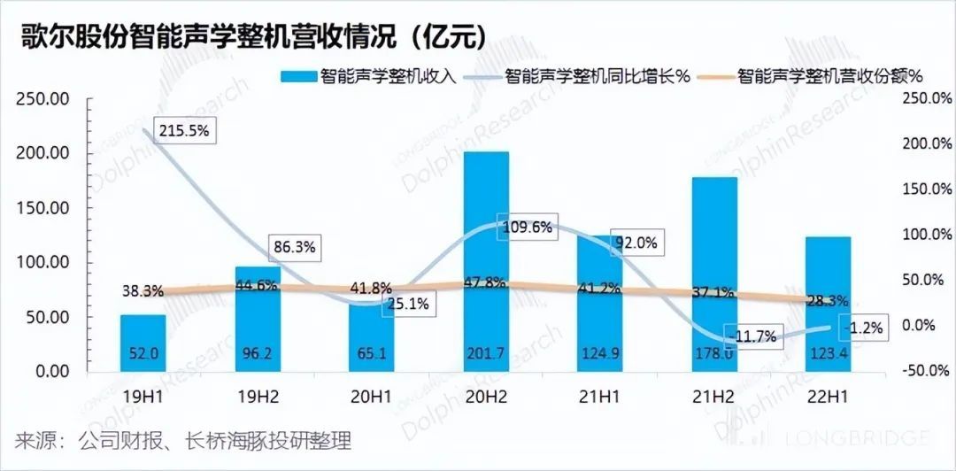 庆幸的是,歌尔股份撕下了消费电子的标签,已经找到了第三成长曲线。本季度公司智能声学业务占比进一步下滑至 30% 以下。