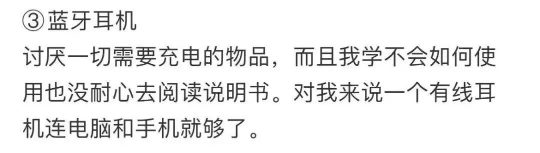 比如,在分享“不会再购入的物品”时称,不会再购买 蓝牙耳机。